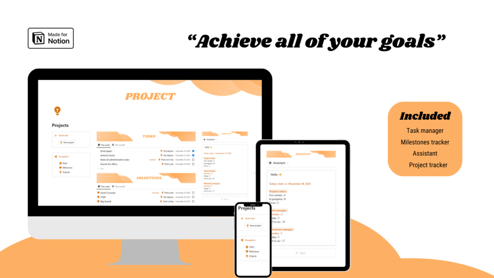 You'll get the "Projects" template with an instruction guide to reach all of your goals !